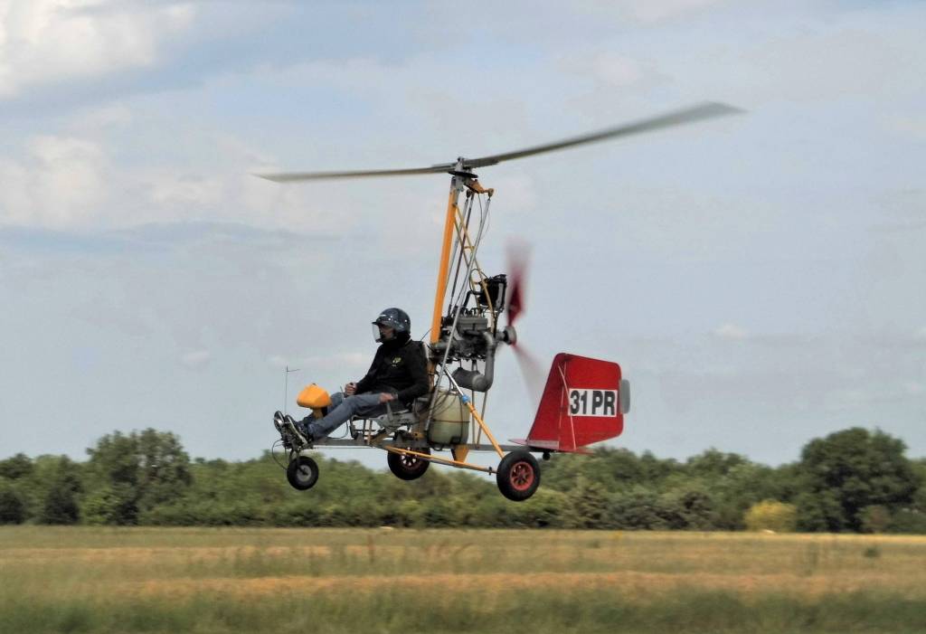 Being small and slow, they had us take off first. As usual there was little wind on this humid afternoon and what little there was of it drifted lazily towards runway 13, which meant an extended hammering for Delta-J, devoid of suspension with six-inch wheels. Taxiing to 31 is bad enough, but 13 is even further away and it takes an age to jolt down to the end. Thoroughly shaken up, we managed to scramble into the air after rattling along half of the runway, trying to get the rotors to show some interest. It was a relief to get aloft and find some lift, slotting into our alloted position as the bigger boys sailed past with nonchalant ease. Later, a repreat performance saw us unstick from Sabo’s rough downhill strip, having requested that Eric proceed us in order to harvest his prop wash and boost my lazy Dragon Wings. It never fails. We trickled back to the Gyro Club in line astern, Pierre formating nicely on our right axle. There aren’t many I would trust to fly that close – but it’s shame my action cam was fastened on the other side!